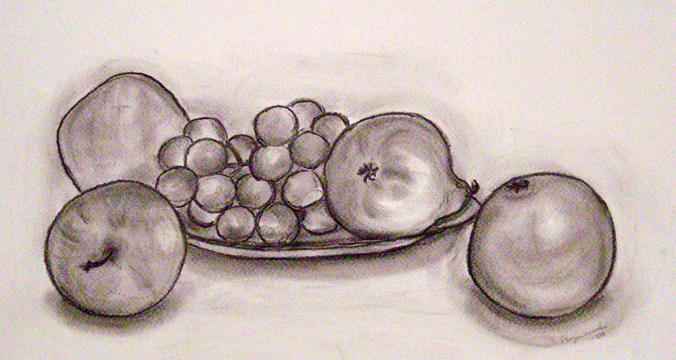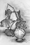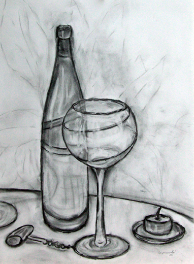 weißer Porzellankrug mit Schleife, Kohle auf Papier, 2010, 20x30