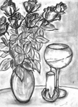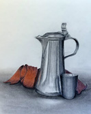 Zinnkrug mit roter Schleife, Bleistift auf Papier, 2022, 30x40